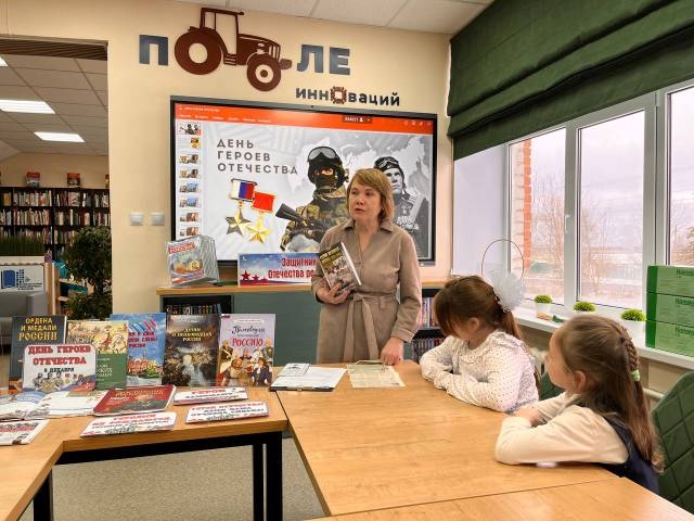 Ребята услышали о героических поступках солдат Великой Отечественной войны, о мужестве воинов-интернационалистов, а также о героях, проявивших себя в новейшей истории, включая тех, кто сейчас защищает нашу страну в ходе специальной военной операции на Украине. Видеоролик «День героев Отечества» помог еще глубже прочувствовать значимость этого дня, а книжная выставка «Защитники Отечества» представила книги о героях разных времен и званий.